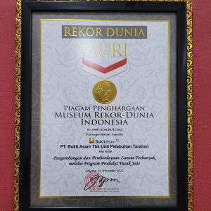 Lampung–PT Bukit Asam Tbk (PTBA) bekerja sama dengan Paguyuban Krajan berhasil mendapatkan anugerah dari Museum Rekor Dunia Indonesia (MURI) karena telah memberdayakan
