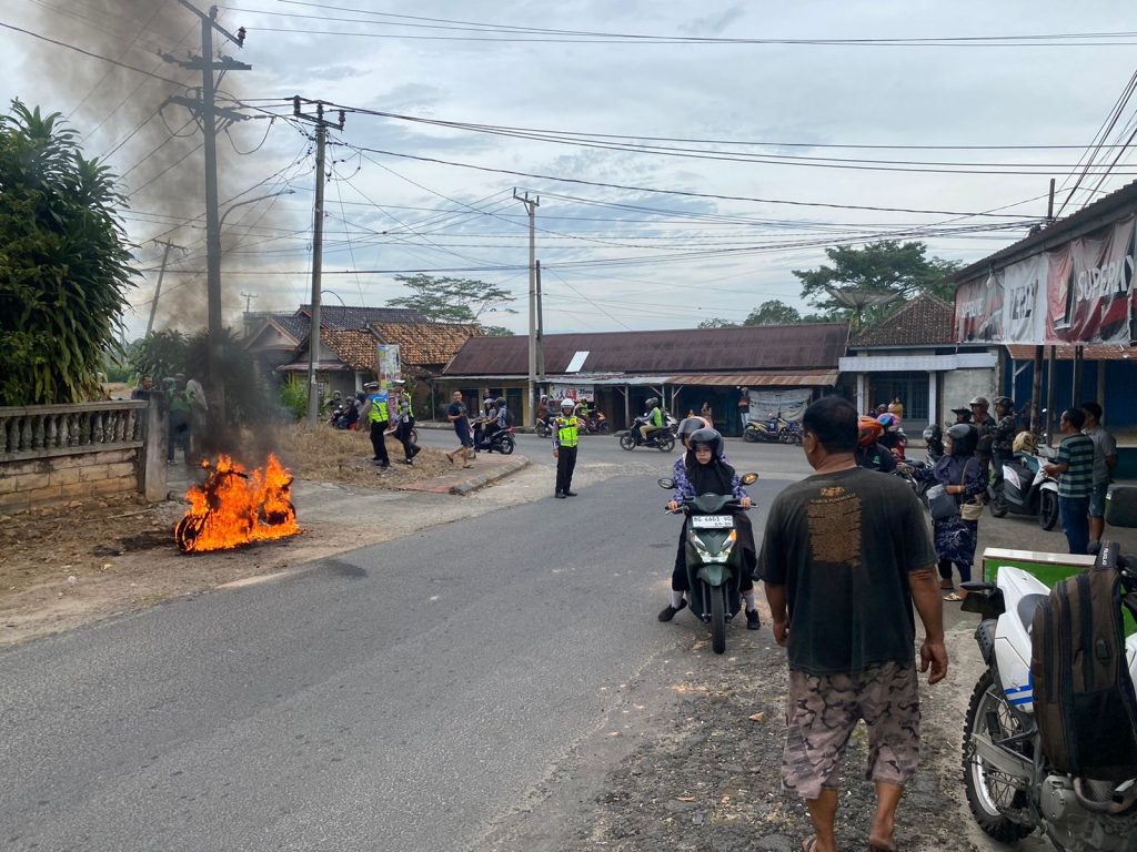 OKU Selatan, Sumsel–Sebuah sepeda motor Yamaha Mio Sporty tanpa nomor polisi terbakar di Simpang Kota Way, Kecamatan Muaradua, Kabupaten OKU Selatan, Rabu (4/3/2026) sekitar pukul 07.15 WIB. Peristiwa ini terjadi saat anggota Sat Lantas Polres OKU Selatan tengah melaksanakan pengaturan lalu lintas dan strong point pagi. Rabu (04/03/2026).