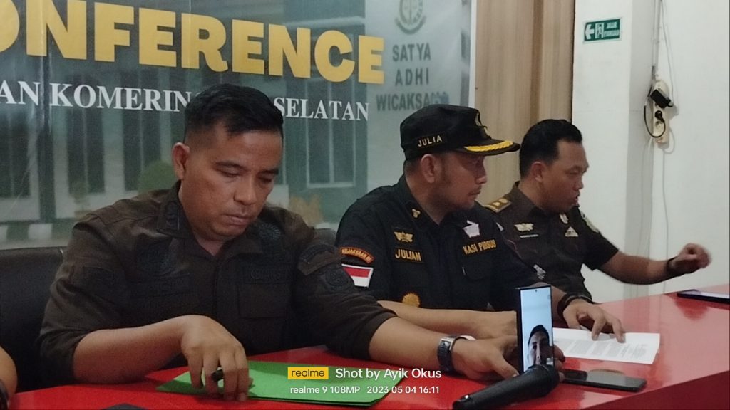 Kajari OKU Selatan, Dr Adi Purnama dalam keterangan persnya yang didampingi Kasi Pidsus, Julian Rahman dan Kasi Intelijen Aci Jaya Saputra, mengatakan hari ini pihaknya menetapkan tiga tersangka dugaan tindak pidana korupsi di Bawaslu Kabupaten OKU Selatan.
