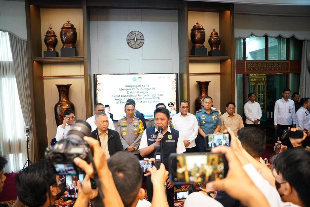 Palembang Sumsel–Polda Sumsel menegaskan kesiapan penuh dalam mengamankan arus mudik dan balik Idul Fitri 1447 H/2026 M. Komitmen tersebut ditegaskan langsung oleh Kapolda Sumsel Irjen Pol. Dr. Sandi Nugroho, S.I.K., S.H., M.Hum., saat mendampingi kunjungan kerja Menteri Perhubungan RI di Griya Agung Palembang, Rabu (25/2/2026).