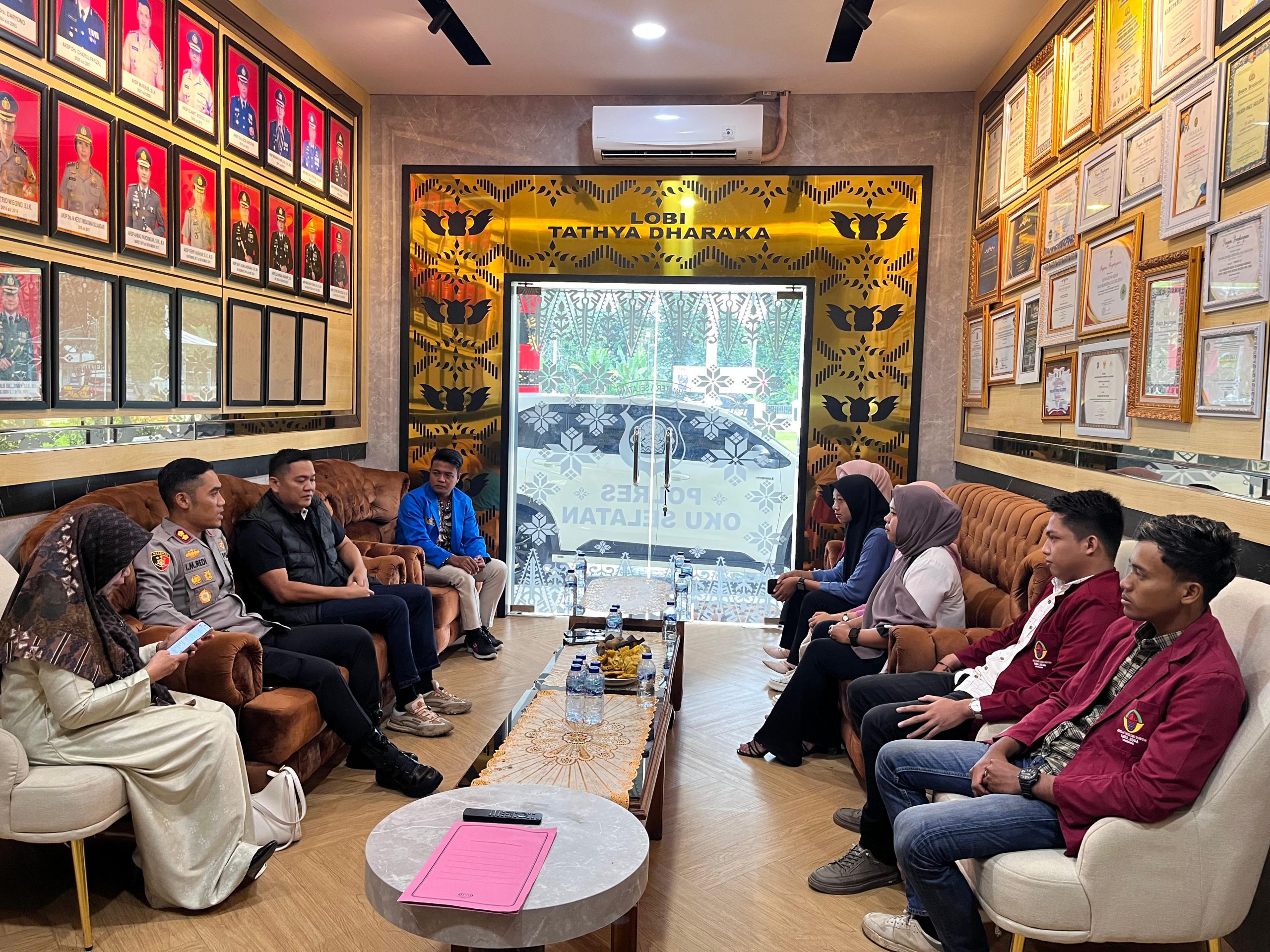OKU Selatan, Sumsel–Polres OKU Selatan menggelar silaturahmi dan dialog terbuka bersama mahasiswa/i se-Kabupaten OKU Selatan, Jumat (13/2/2026), di Ruang Lobi Tathya Dharaka Mapolres. Pertemuan ini berlangsung hangat, penuh gagasan konstruktif, dan ditutup dengan makan siang serta salat berjamaah.