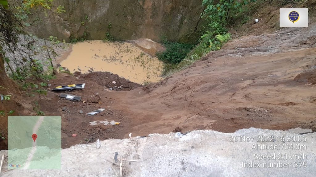 OKU Selatan Sumsel–Tingginya curah hujan yang berlangsung beberapa waktu lalu hingga hari ini menyebabkan ruas jalan lintas Muaradua-Lampung tepatnya di Desa Simpang Sender Utara, Kecamatan Buay Pematang Ribu Ranau Tengah (BP-RRT) kabupaten OKU Selatan kembali amblas. Sabtu (26/11/2022).