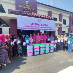 Porosinformasi.com – Ketua Bhayangkari Cabang Metro Bekasi, Ny. Yanti Mustofa, didampingi Wakil Ketua Ny. Karina Apri dan jajaran pengurus, melaksanakan kunjungan kerja